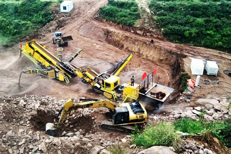 方案四:可移動型。移動鄂破+移動圓錐破+移動篩分機;移動鄂破+移動反擊破(含篩分);移動重錘破(移動反擊破)。
