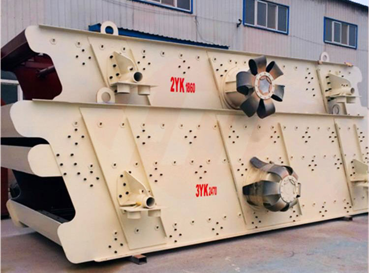 直線振動(dòng)篩由振動(dòng)源、篩體、篩網(wǎng)、減振裝置和底托等組成。