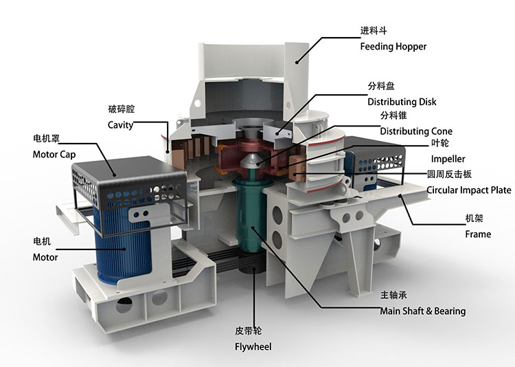物料從制砂機(jī)料斗進(jìn)入制作成兩部分,該分給料機(jī)中的一部分分給料機(jī)進(jìn)步的物質(zhì)進(jìn)入葉輪高速旋轉(zhuǎn)的沙子,在葉輪的迅速擴(kuò)大,至幾百倍的加速度重力加速度,然后60-70m/s,從三個(gè)均勻分布在 四與材料的分饋線從收入的影響,打破了部分周彈丸出來(lái),然后用流動(dòng)葉輪速度到渦支撐材料襯腔的影響是襯材料對(duì)旋流室頂部斜碰撞反彈,而且還改變其運(yùn)動(dòng)方向,傾斜向下,這樣才能使材料在一塊渦流破碎腔幾次由兩個(gè)或兩個(gè)以上碰撞的概率,摩擦和研磨破碎作用。材料被打破由卸貨港下排,在整個(gè)過(guò)程中的下一個(gè)突破,對(duì)自己的破碎,不與金屬元件直接接觸的每一個(gè)重大影響。從腔內(nèi)的空氣湍流智能周期內(nèi)流動(dòng),消除了粉塵污染。