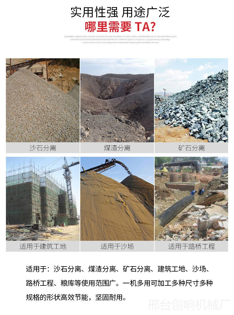 1.安裝基礎(chǔ)簡易:因整個設(shè)備為箱形框架結(jié)構(gòu),只需有一平整地面即可。分為滾筒式篩沙機、水洗滾筒式篩沙機、振動篩式篩沙機等。由船體,架子,減速機,傳送帶,轉(zhuǎn)篩,發(fā)念頭或電機,組成。